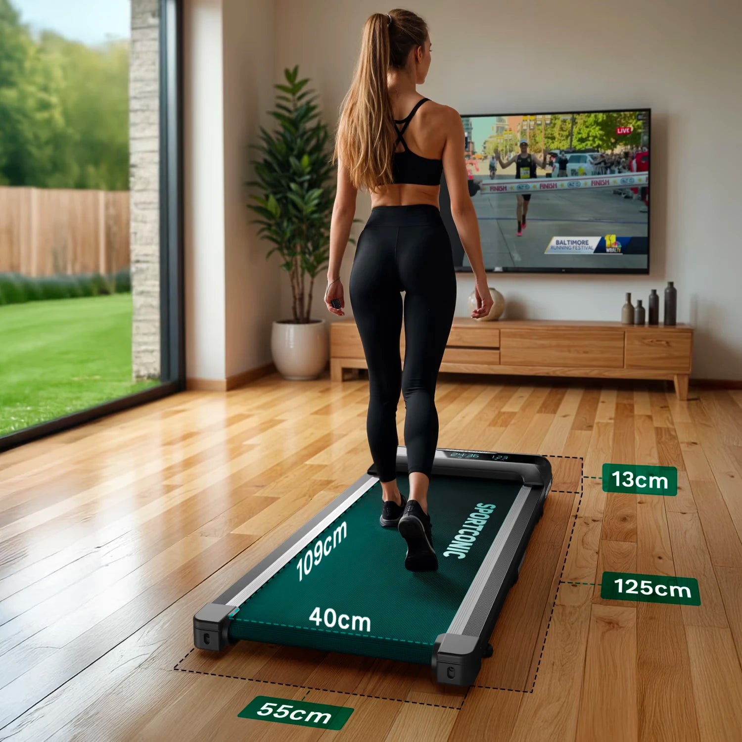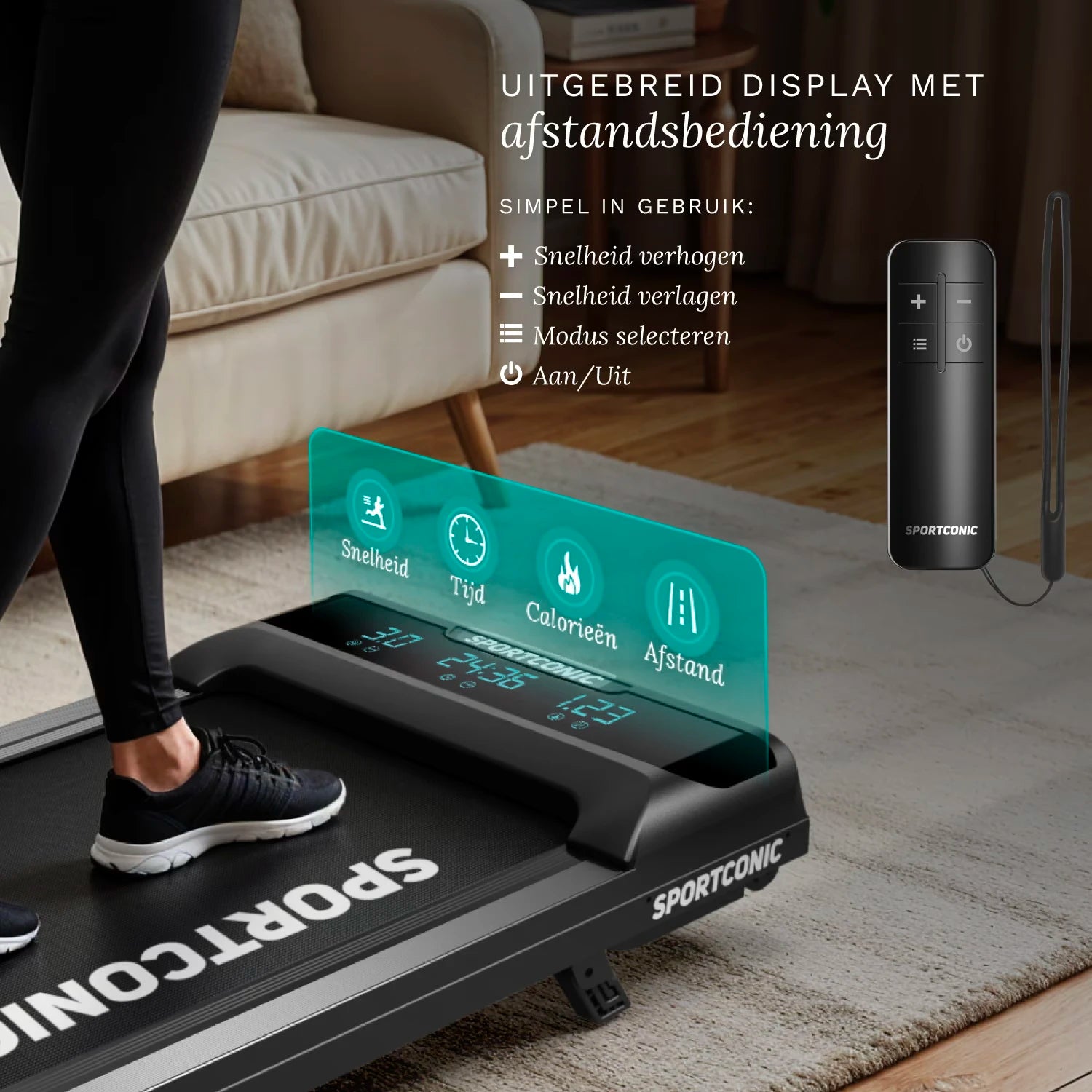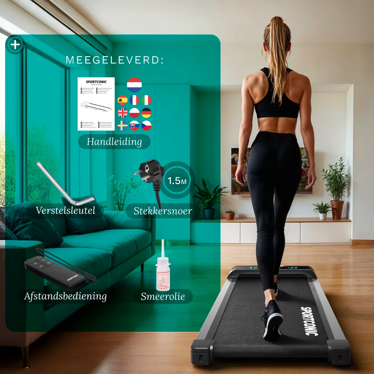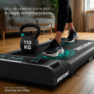 Stille, compacte wandelband tot 6 km/u. Perfect voor onder je bureau of thuis voor de tv. Geen installatie nodig, direct klaar voor gebruik.